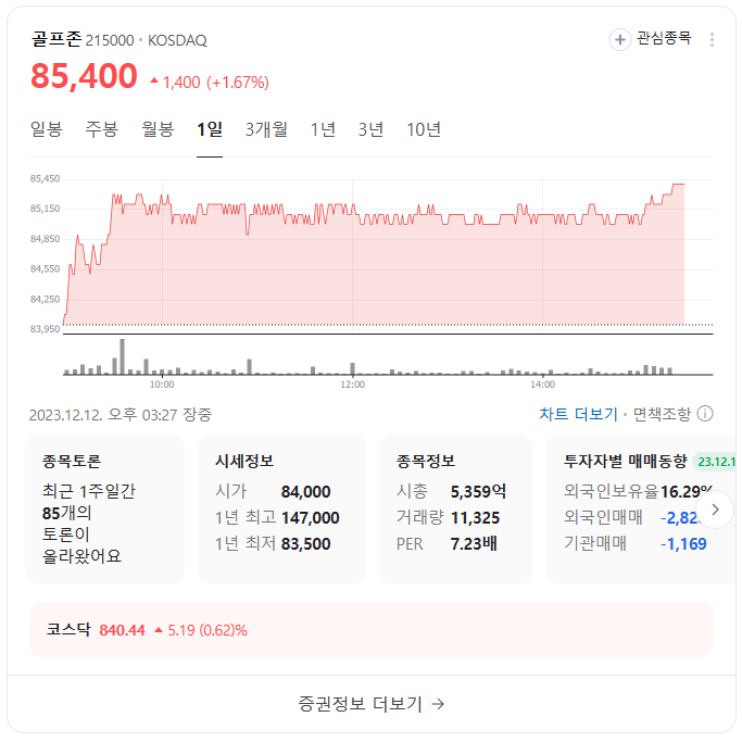 이 글에서는 골프존 주가 전망과 목표 주가, 기업 정보에 대해서 설명합니다. 주식 시장에서 중요한 것은 미래의 기업 가치를 예측하고 선제적으로 움직이는 것입니다. 투자할 종목을 고르기 전에 현재 기업의 현황과 데이터를 확인하는 것이 필요합니다. 골프존 주식의 주요 현황과 투자 정보를 확인하시고 주식 투자에 도움이 될 만한 정보들을 모아 놓았으니 투자 시 참고하시기 바랍니다.