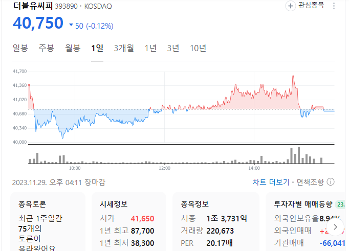 더블유씨피 현재 주가는 40,800원이며 전일 대비 -300원의 모습을 보이고 있습니다. 더블유씨피의 주주현황을 살펴보면 W-SCOPE Corporation(외 1인)이 지분 36.21%를 소유하고 있습니다. 더블유씨피는 전자 장비 및 기기 기업으로 장중 기준으로 주가는 40,800원 입니다. 삼성전자의 시가 총액은 1조3731억 원이며 발행 주식수는 8.88주 입니다. 외국인 보유 비중은 1,002,523% 이며 장중 거래량은 33,696,518를 기록했습니다. 매출액은 1,511억 원, 영업이익은 580억 원을 달성했습니다. EPS는 1,783원이며 더블유씨피 주식 배당수익률은 % 입니다.