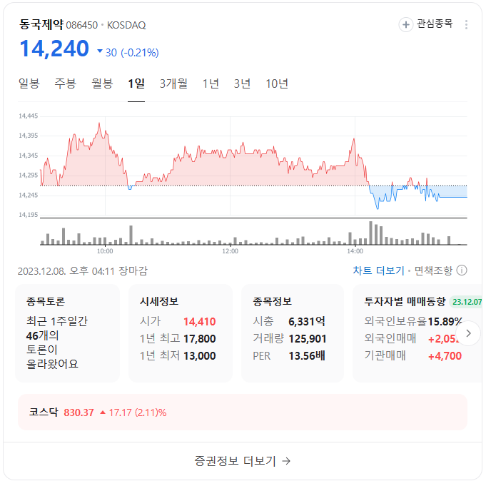 이 글에서는 동국제약 주가 전망과 목표 주가, 기업 정보에 대해서 설명합니다. 주식 투자에서 주목할 점은 미래의 기업 가치를 예측하고 먼저 행동하는 것입니다. 투자 대상을 선정하기 전에 현재의 기업 현황과 수치를 분석해야 합니다. 동국제약 주식의 주요 현황과 투자 정보를 확인하시고 주식 투자에 도움을 줄 자료들을 모아 두었으니 투자 결정에 도움을 받으시길 바랍니다.