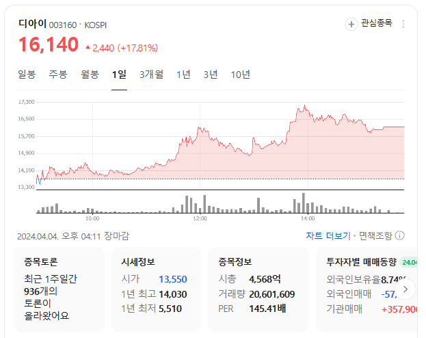이 글에서는 디아이 주가 전망과 목표 주가, 기업 정보에 대해서 설명합니다. 주식 거래에서 중요한 부분은 현재 기업 가치보다는 미래의 기업 가치를 예측하고 먼저 행동하는 것입니다. 투자할 종목을 고르기 전에 현재 기업의 상황과 지표를 살펴보는 것이 중요합니다. 디아이 주식의 주요 현황과 투자 정보를 확인하시고 주식 투자에 유용한 자료들을 정리하여 제공하오니 효율적인 투자를 해보세요.