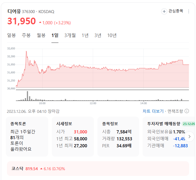 이 글에서는 디어유 주가 전망과 목표 주가, 기업 정보에 대해서 설명합니다. 주식 거래에서 주목해야 할 점은 미래의 기업 가치를 예측하고 먼저 움직이는 것입니다. 투자 대상을 선택하기 전에 현재 기업 상황과 지표를 살펴보아야 합니다. 디어유 주식의 주요 현황과 투자 정보를 확인하시고 주식 투자에 도움을 줄 자료들을 모아 두었으니 투자에 도움을 받으시길 바랍니다.