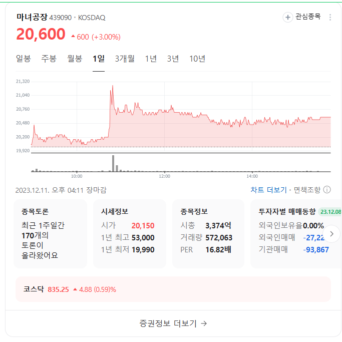 이 글에서는 마녀공장 주가 전망과 목표 주가, 기업 정보에 대해서 설명합니다. 주식 시장에서 중요한 것은 미래의 기업 가치를 예측하고 선제적으로 움직이는 것입니다. 투자할 종목을 고르기 전에 현재 기업의 현황과 데이터를 확인하는 것이 필요합니다. 마녀공장 주식의 주요 현황과 투자 정보를 확인하시고 주식 투자에 도움이 될 만한 정보들을 모아 놓았으니 투자 시 참고하시기 바랍니다.