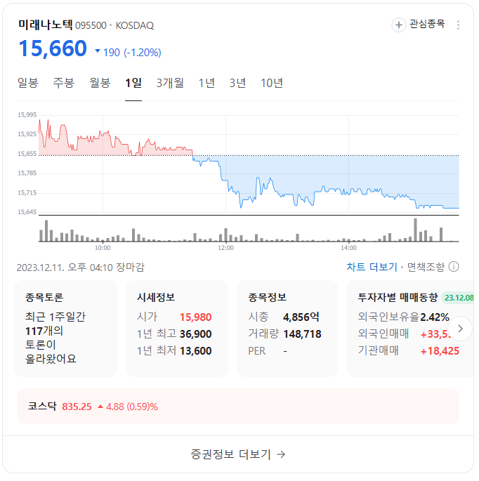 이 글에서는 미래나노텍 주가 전망과 목표 주가, 기업 정보에 대해서 설명합니다. 주식 시장에서 중요한 것은 미래의 기업 가치를 예측하고 선제적으로 움직이는 것입니다. 투자 대상을 선택하기 전에 현재 기업의 현황과 데이터를 확인하는 것이 필요합니다. 미래나노텍 주식의 주요 현황과 투자 정보를 확인하시고 주식 투자에 도움을 줄 자료들을 모아 두었으니 투자에 도움을 받으시길 바랍니다.