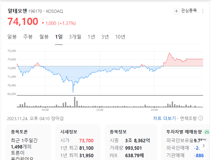 이 글에서는 알테오젠 주가 전망과 목표 주가, 기업 정보에 대해서 설명합니다. 주식 투자의 핵심은 현재의 기업 가치보다는 미래의 가치를 예측하며 먼저 대응하는 것입니다. 투자 대상을 결정하기 위해 먼저 현재 기업 상태와 수치를 검토해야 합니다. 알테오젠 주식의 주요 현황과 투자 정보를 확인하시고 주식 투자에 도움이 될 만한 정보들을 모아 놓았으니 투자를 고려하실 때 참고하세요.
