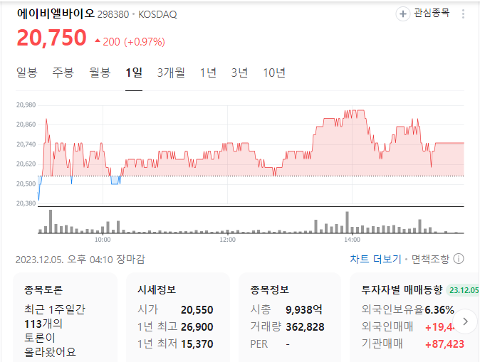 이 글에서는 에이비엘바이오 주가 전망과 목표 주가, 기업 정보에 대해서 설명합니다. 주식 투자의 핵심은 현재의 기업 가치보다는 미래의 가치를 예측하며 먼저 대응하는 것입니다. 투자 대상을 결정하기 위해 먼저 현재 기업 상태와 수치를 검토해야 합니다. 에이비엘바이오 주식의 주요 현황과 투자 정보를 확인하시고 주식 투자에 유용한 정보들을 모아두었으니 투자 결정에 도움을 받으실 수 있을 것입니다.