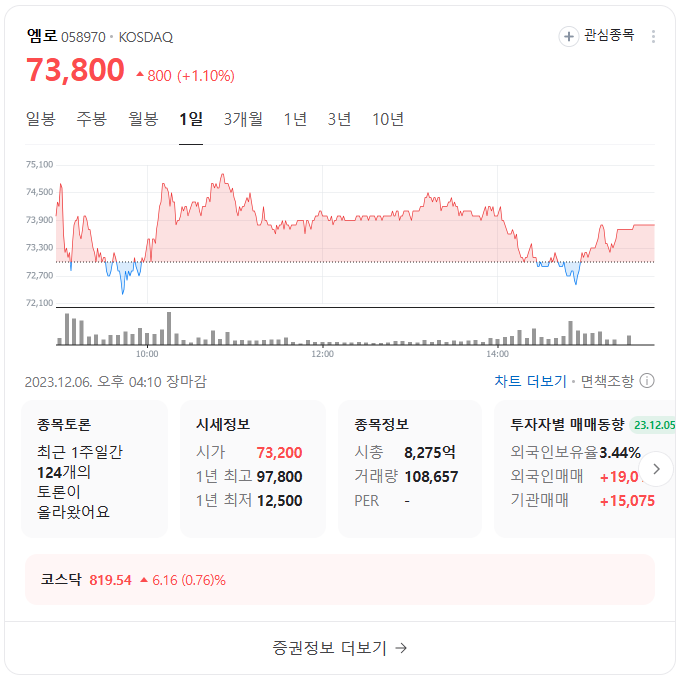 이 글에서는 엠로 주가 전망과 목표 주가, 기업 정보에 대해서 설명합니다. 주식 투자의 핵심은 현재의 기업 가치보다는 미래의 가치를 예측하며 먼저 대응하는 것입니다. 투자 대상을 결정하기 위해 먼저 현재 기업 상태와 수치를 검토해야 합니다. 엠로 주식의 주요 현황과 투자 정보를 확인하시고 주식 투자에 도움이 되는 자료들을 정리하여 제공하니 투자 시 참고하시길 추천합니다.