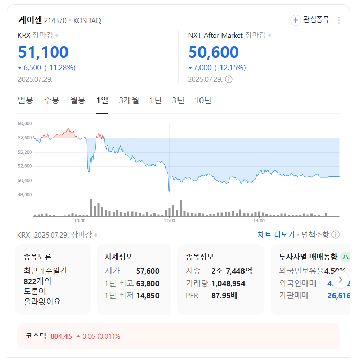 케어젠 주가 급락, 단순한 실적 문제가 아니다?
