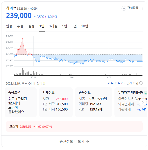 이 글에서는 하이브 주가 전망과 목표 주가, 기업 정보에 대해서 설명합니다. 주식 투자에서 핵심은 미래의 기업 가치를 예상하고 선제적으로 움직이는 것입니다. 투자 대상을 결정하기 전에 현재 기업의 현황과 수치를 검토하는 것이 필요합니다. 하이브 주식의 주요 현황과 투자 정보를 확인하시고 주식 투자에 유용한 정보들을 한 곳에 정리해두었으니 투자에 도움 받으시길 바랍니다.