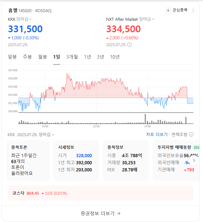 - 재무 안정성 및 주주 환원: 휴젤은 2022년 사모펀드로부터 경영 독립을 달성했으며, 2024년부터 무차입 재무 구조를 유지하고 있습니다. 2025년 상반기 ITDA 기준 연간 1,500억원 이상의 현금 흐름을 창출하고 있으며, 일부는 자사주 매입과 배당에 할당하고 있습니다. 분기 배당 및 주당 배당금 증액 논의가 진행 중이며, 이는 기관 투자자들의 관심을 끌 수 있습니다. 실제로 2025년 2분기부터 연기금 및 자산운용사를 포함한 기관 투자자들이 휴젤을 포트폴리오에 다시 편입하기 시작하여 주가에 긍정적인 영향을 미치고 있습니다.