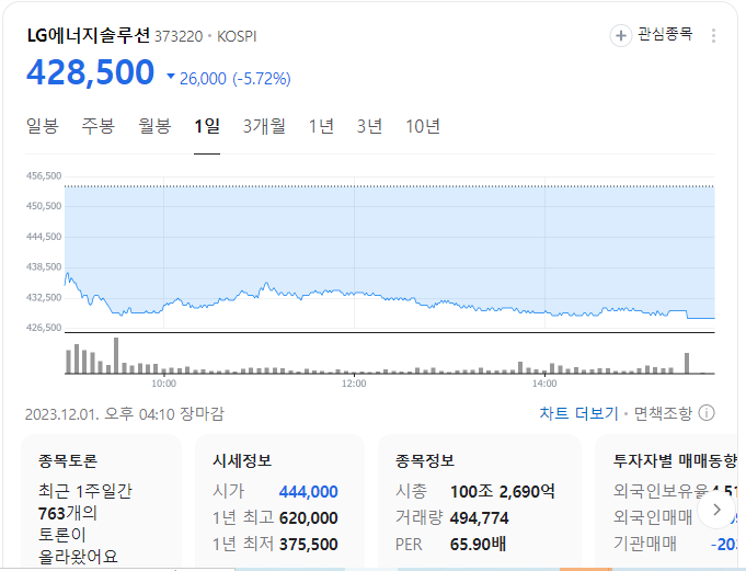 이 글에서는 LG에너지솔루션 주가 전망과 목표 주가, 기업 정보에 대해서 설명합니다. 주식 시장에서 중요한 것은 미래의 기업 가치를 예측하고 선제적으로 움직이는 것입니다. 투자 대상을 선택하기 전에 현재 기업의 현황과 데이터를 확인하는 것이 필요합니다. LG에너지솔루션 주식의 주요 현황과 투자 정보를 확인하시고 주식 투자를 고민하고 계시다면 유용한 정보들을 모아 놓은 자료를 확인해보세요.