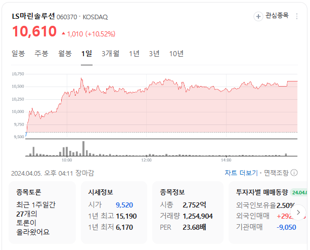 이 글에서는 LS마린솔루션 주가 전망과 목표 주가, 기업 정보에 대해서 설명합니다. 주식 투자의 중심은 미래의 기업 가치를 예측하고 선제적으로 움직이는 것입니다. 투자할 종목을 고르기 전에 현재 기업 상태와 지표를 살펴야 합니다. LS마린솔루션 주식의 주요 현황과 투자 정보를 확인하시고 주식 투자를 고려하고 계신다면 유용한 정보들을 모아 놓은 자료를 확인해보세요.